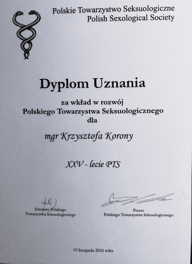 Krzysztof Korona – psycholog kliniczny, seksuolog kliniczny, psychoterapeuta, superwizor, trener Kraków